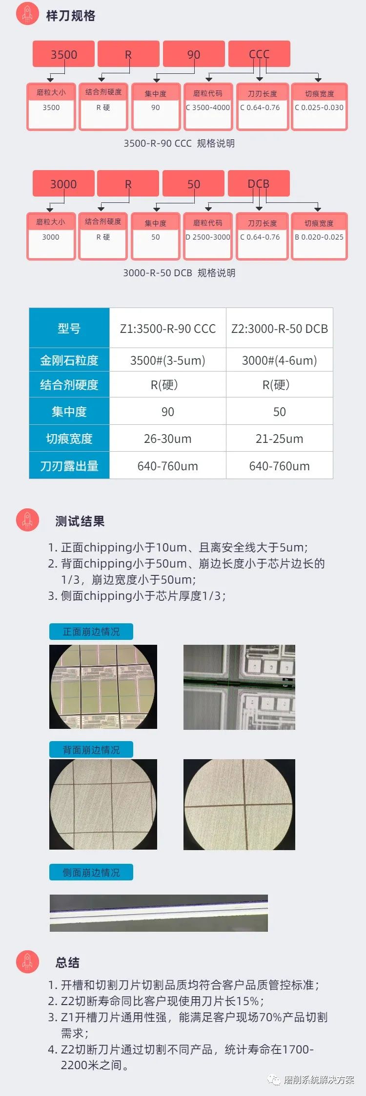 選擇適合的切割刀片及適合的工藝參數,保證切割效果;